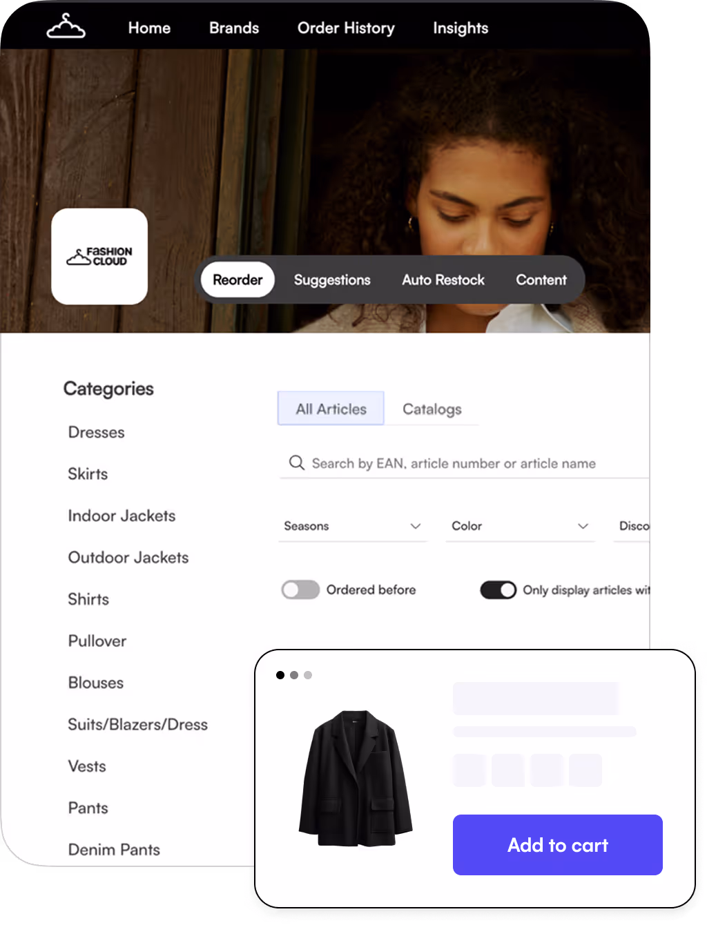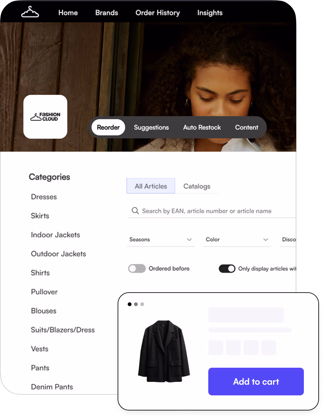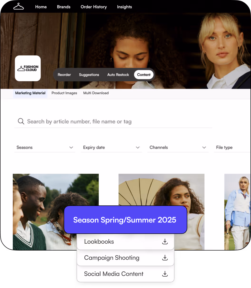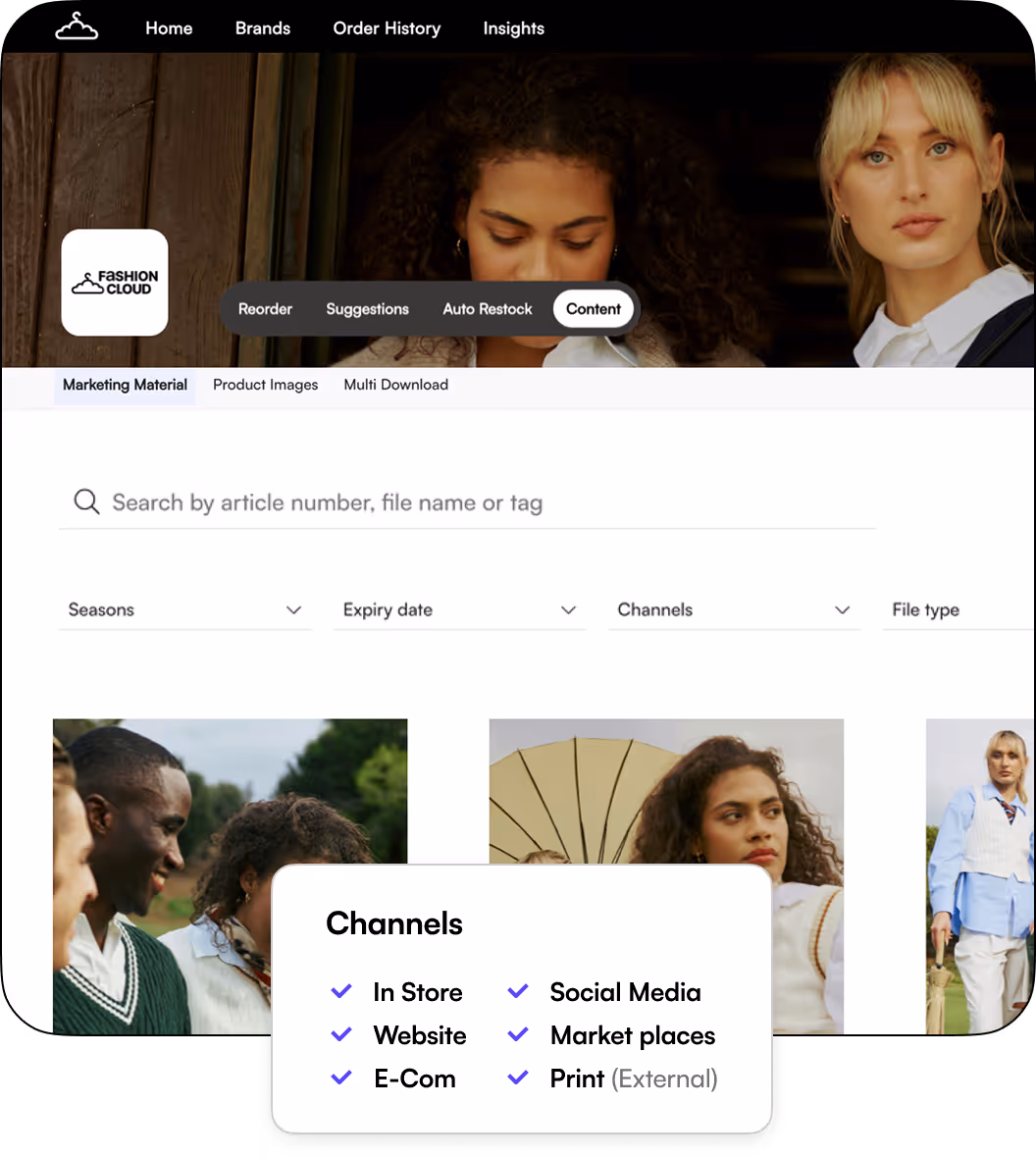 Fashion Cloud ist Europas führende B2B-Plattform, die entwickelt wurde, um die Verbindung zwischen Einzelhändlern und Marken zu vereinfachen und zu verbessern. Die Plattform optimiert das digitale Bestellmanagement, das Teilen von Inhalten und die smarte Nachbestückung, wodurch Einzelhändler Zeit sparen und ihre Effizienz steigern. Mit Tools wie Content, B2B und Smart Replenishment bietet Fashion Cloud einfachen Zugriff auf Produktbilder und -daten, Echtzeit-Bestandsinformationen und nahtlose Bestellungen – für ein kollaboratives Wholesale-Erlebnis.