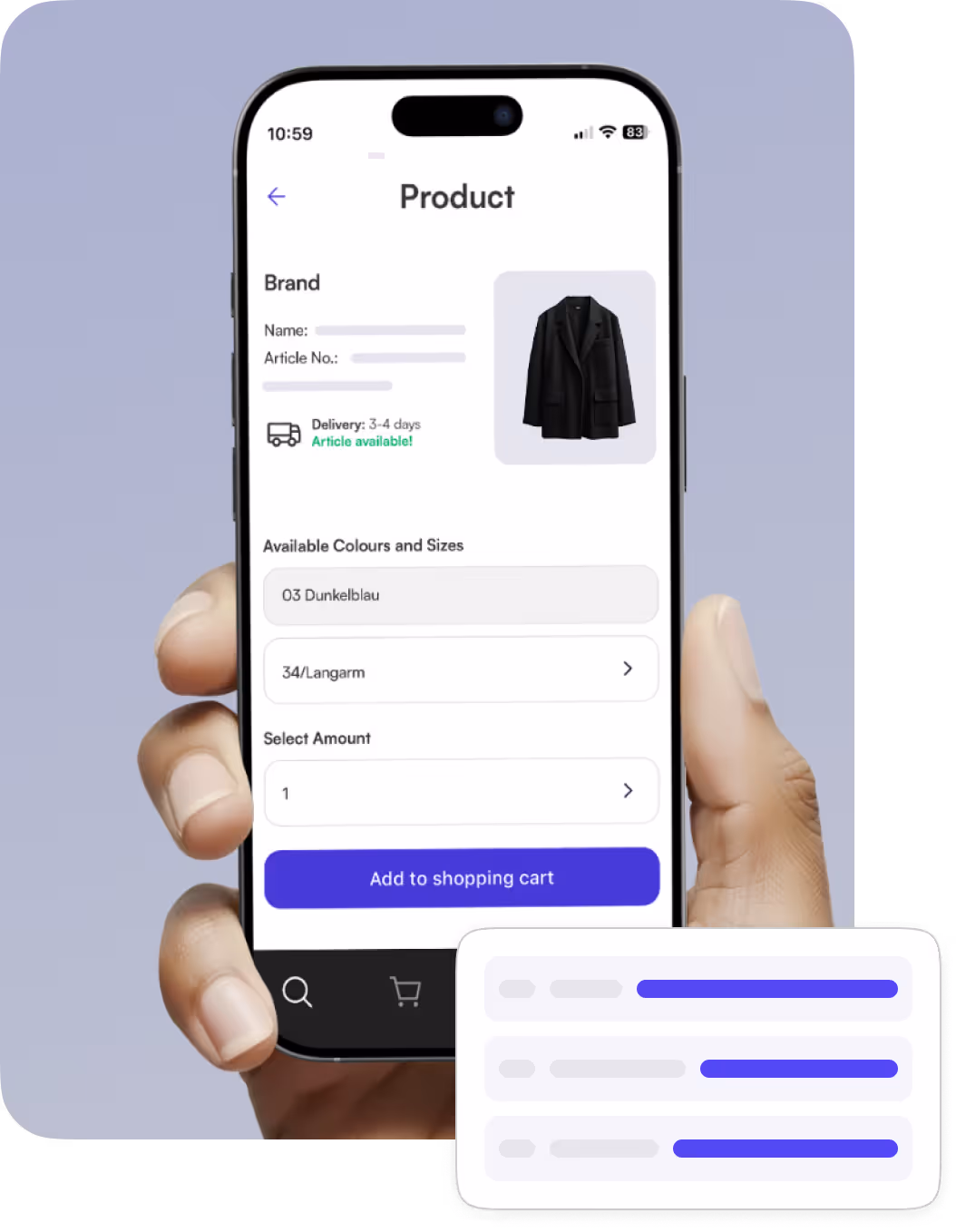 Erhöhe die Produktverfügbarkeit auf der Verkaufsfläche: Mit der Clara-App kannst du fehlende Artikel während Verkaufsgesprächen direkt über Smartphone oder Tablet nachbestellen – für zufriedene Kunden und volle Regale. Alles nahtlos unterstützt durch Fashion Cloud-Integration und fachkundige Unterstützung.